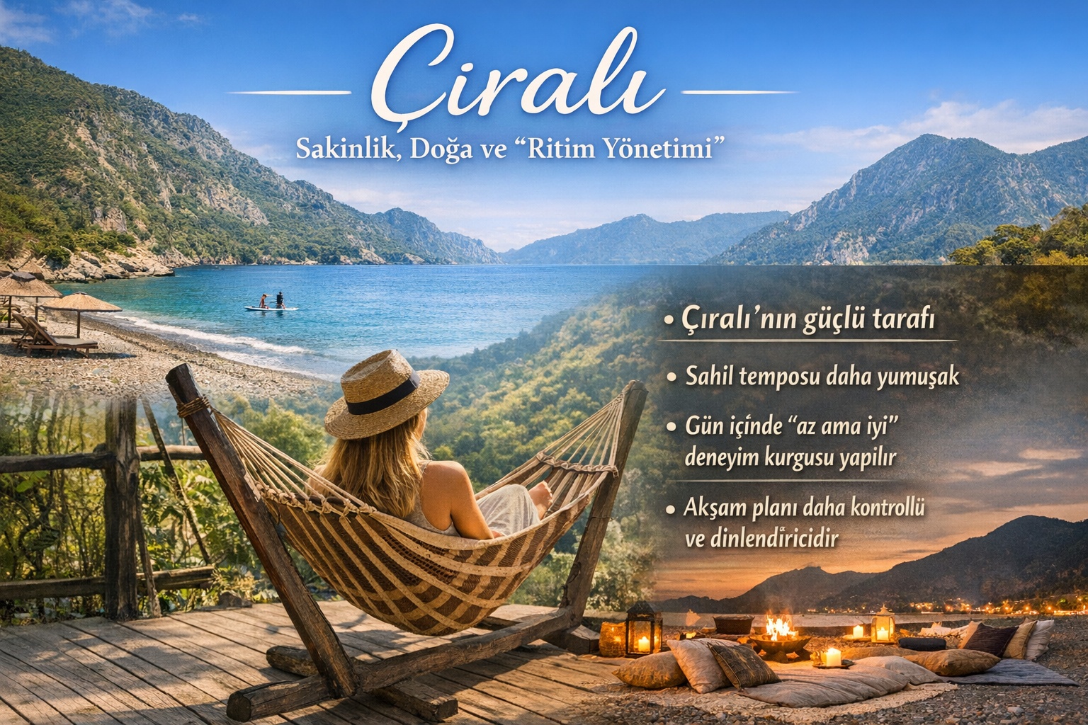 Çıralı; kalabalıkla mesafeyi korumak isteyen, “tatilde sessizlik de bir hizmettir” diyen misafirler için güçlü bir lokasyondur. Burada plan, daha az hareket ama daha yüksek kalite hedeflemelidir.
