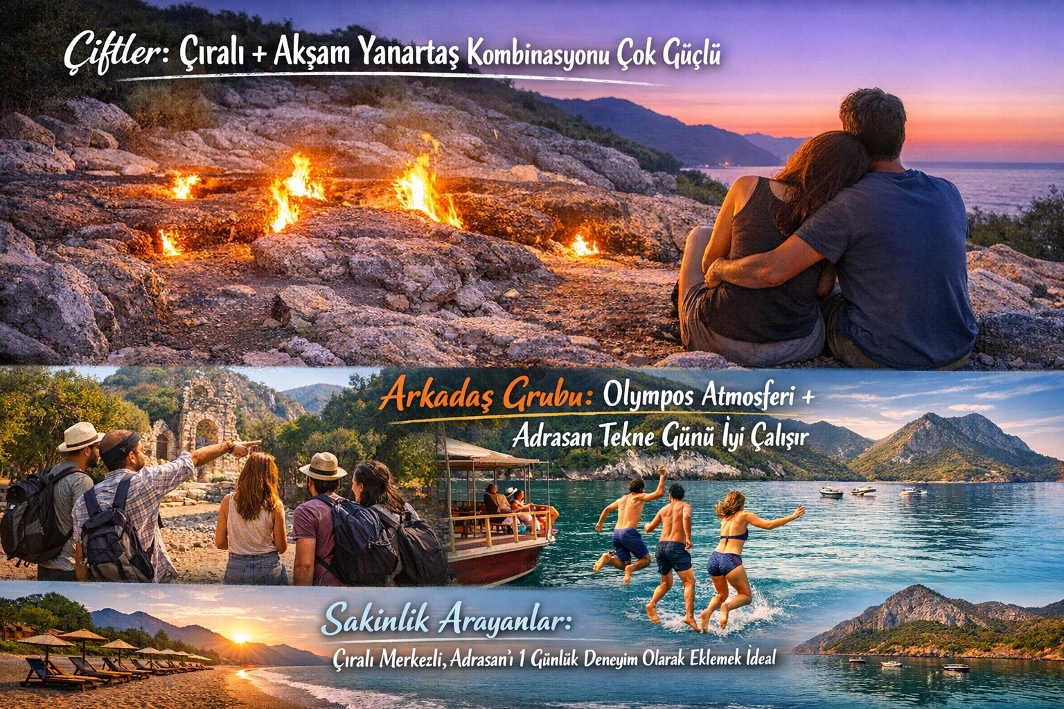 * Arkadaş grubu: Olympos atmosferi + Adrasan tekne günü iyi çalışır