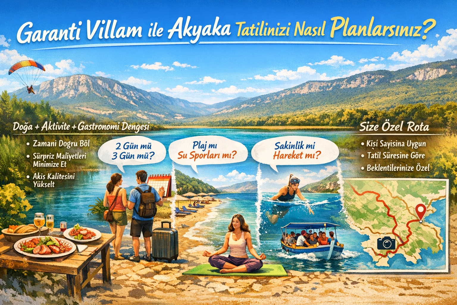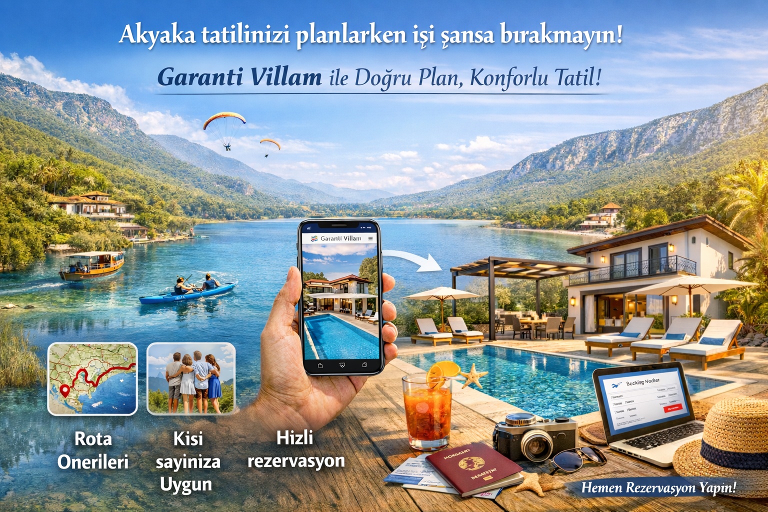 Garanti Villam yaklaşımı; tatili “konaklama” değil, uçtan uca deneyim kurgusu olarak ele alır. Akyaka’da doğru plan;