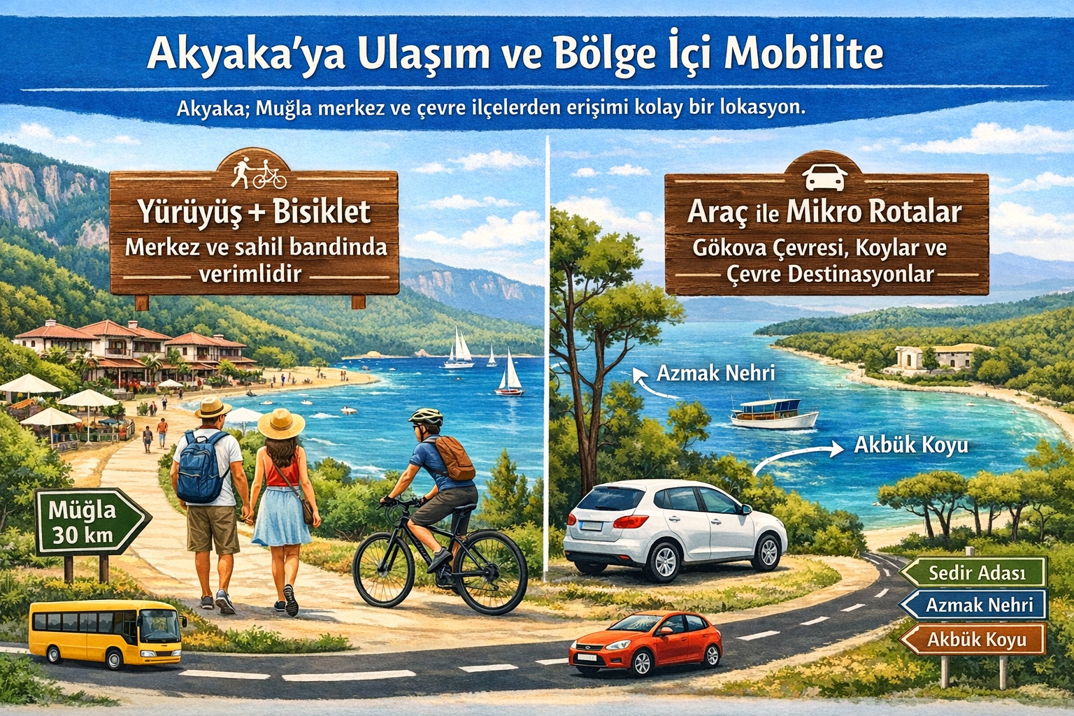 * Araç ile mikro rotalar: Gökova çevresi, koylar ve çevre destinasyonlar için avantaj sağlar