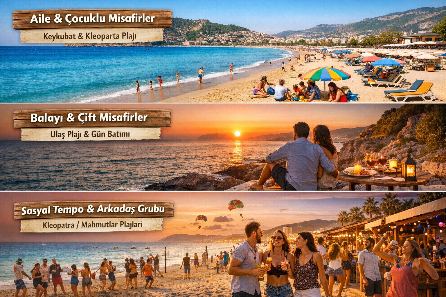 Alanya’da plaj seçimini “tek plaj” mantığıyla değil, misafir profilinize göre deneyim paketine dönüştürün. Aşağıdaki öneriler, aile–çift–sosyal tempo segmentlerinde karar vermeyi hızlandırır: