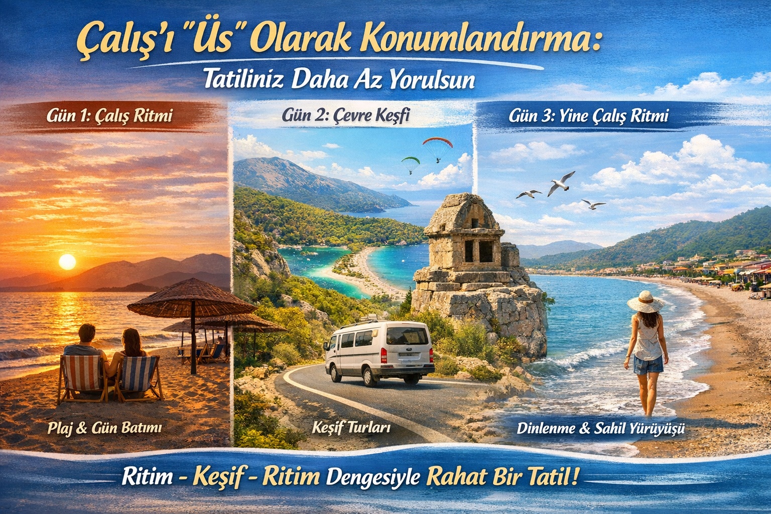 Çalış’ın en stratejik avantajlarından biri, tatilinizin her gününü yeniden planlamayı gerektirmemesidir. Çalış’ı üs kabul ettiğinizde, aşağıdaki model çalışır: