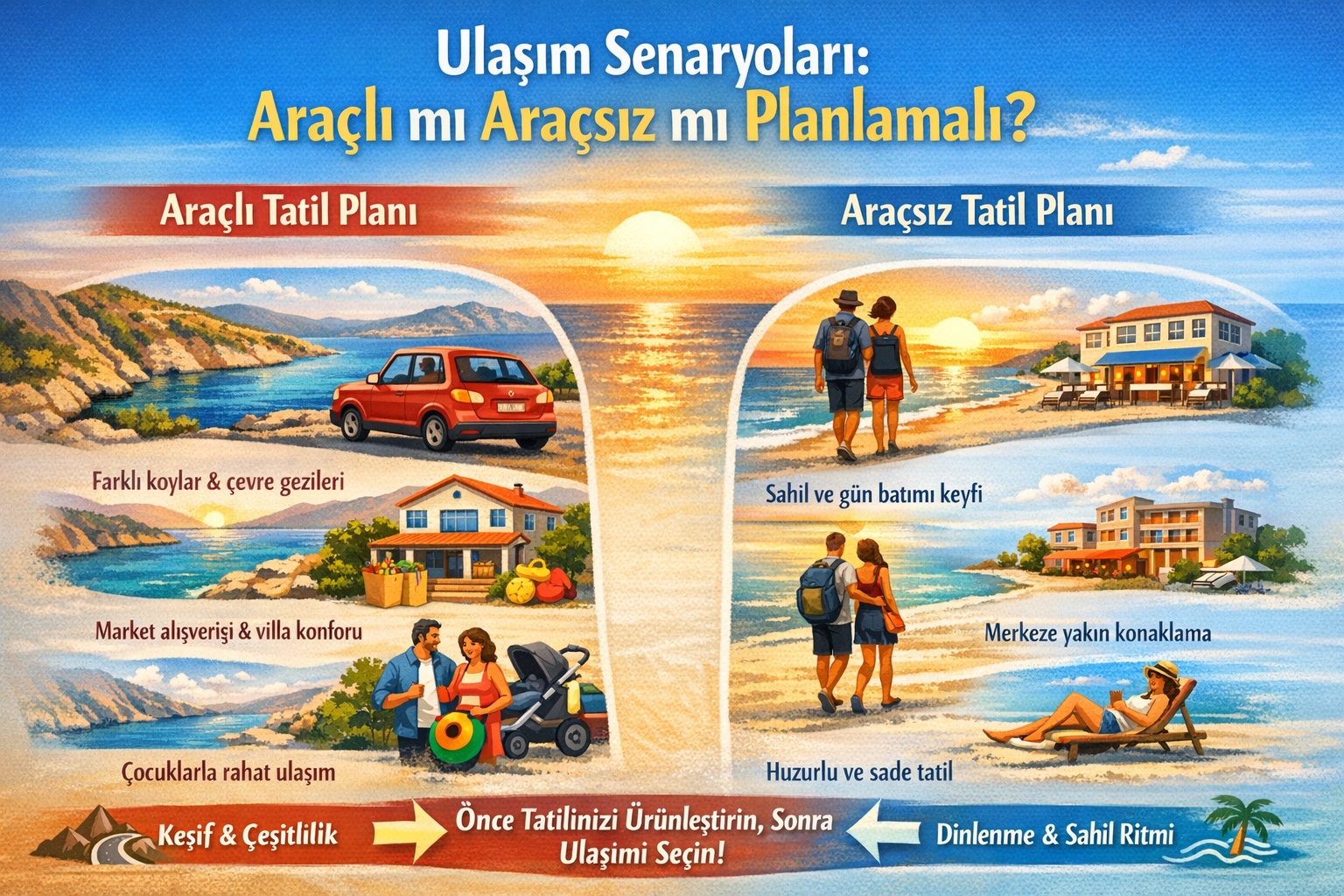 Bu noktada doğru yaklaşım şudur: Önce tatilinizi ürünleştirin, sonra ulaşımı seçin. Eğer tatil hedefiniz “dinlenme ve sahil ritmi” ise araçsız plan yeterli olabilir; hedef “keşif ve rota çeşitliliği” ise araçlı plan daha yüksek değer üretir.