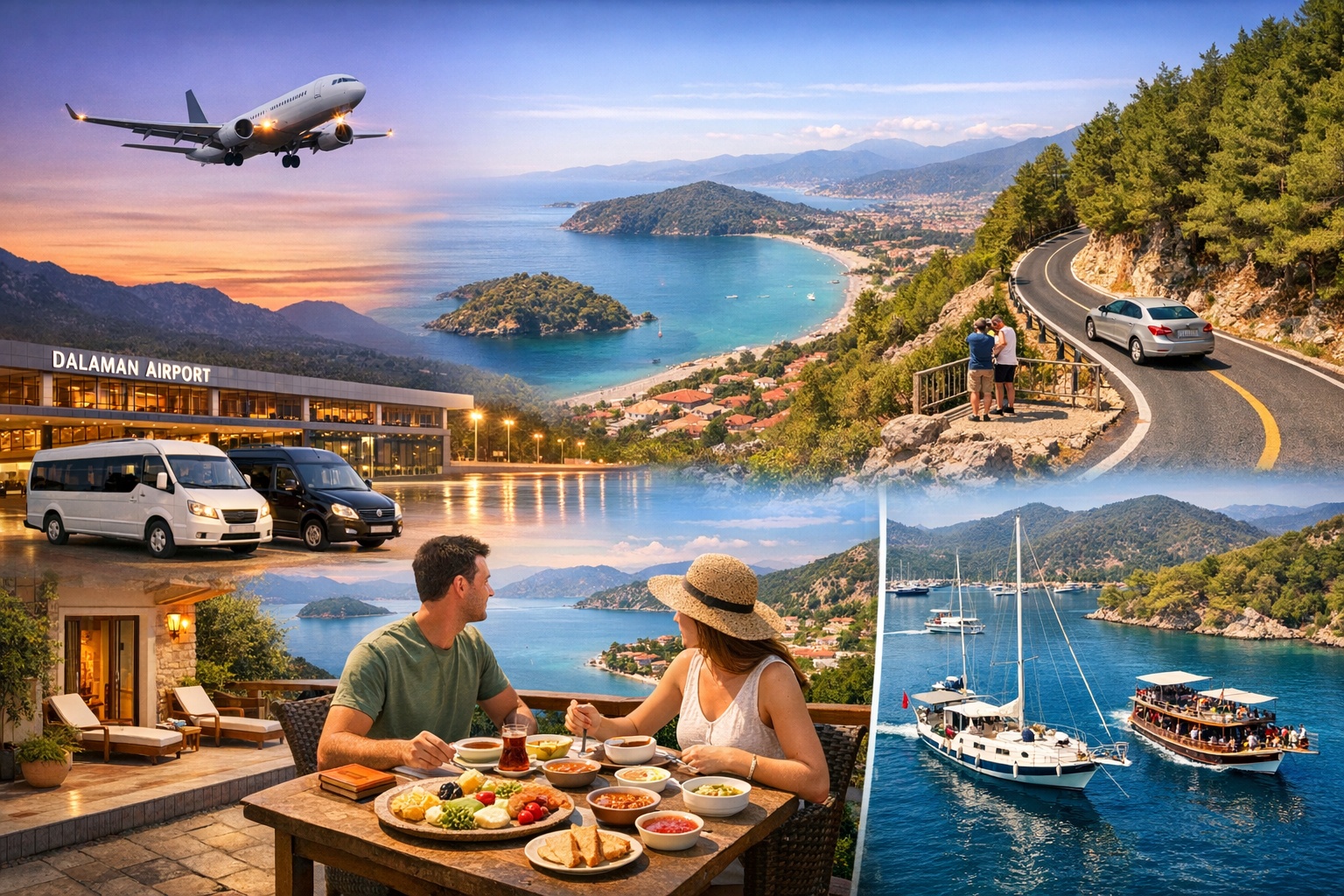 Dalaman Havalimanı, Fethiye’nin ana giriş kapısıdır ve merkez hattına yaklaşık bir saatlik sürüşle bağlanır. Varış zamanına göre shuttle, özel transfer ya da araç kiralama seçenekleri arasından uygun olanı seçmek planı pürüzsüz kılar. Yaz döneminde gece uçuşuyla inenler, serin bir havada villaya geçmenin rahatlığını yaşar; sabah erken saatli varışlarda ise kahvaltı ve kısa bir yürüyüşle bölgeye yumuşak bir giriş yapılabilir. Araç kiralayanlar, koylara sabah erken saatlerde hareket ederek park ve trafik konusunda avantaj sağlar. Navigasyonla sahil–orman geçişli yollarda dikkatli sürüş önerilir; manzaraya dalıp rota kaçırmamak için kısa fotoğraf molalarını planlamak akıllıcadır. Göcek üzerinden tekne turları düşünenler için de liman ve marinalara erişim, aynı gün içinde mümkün olacak kadar pratiktir.