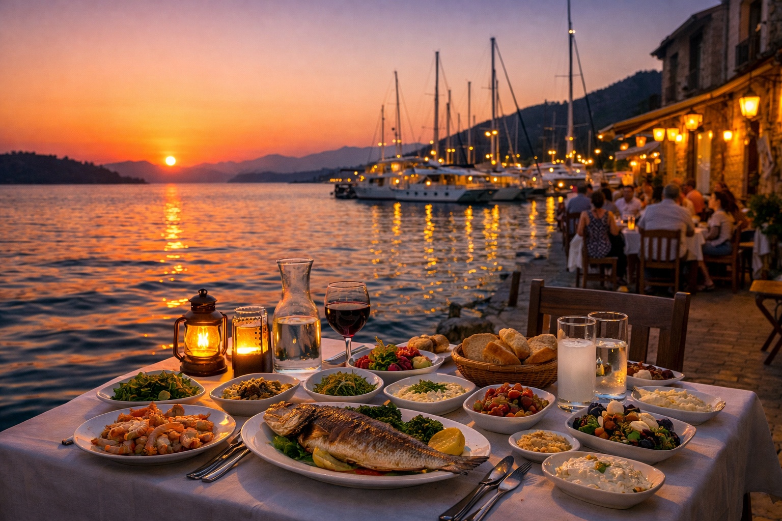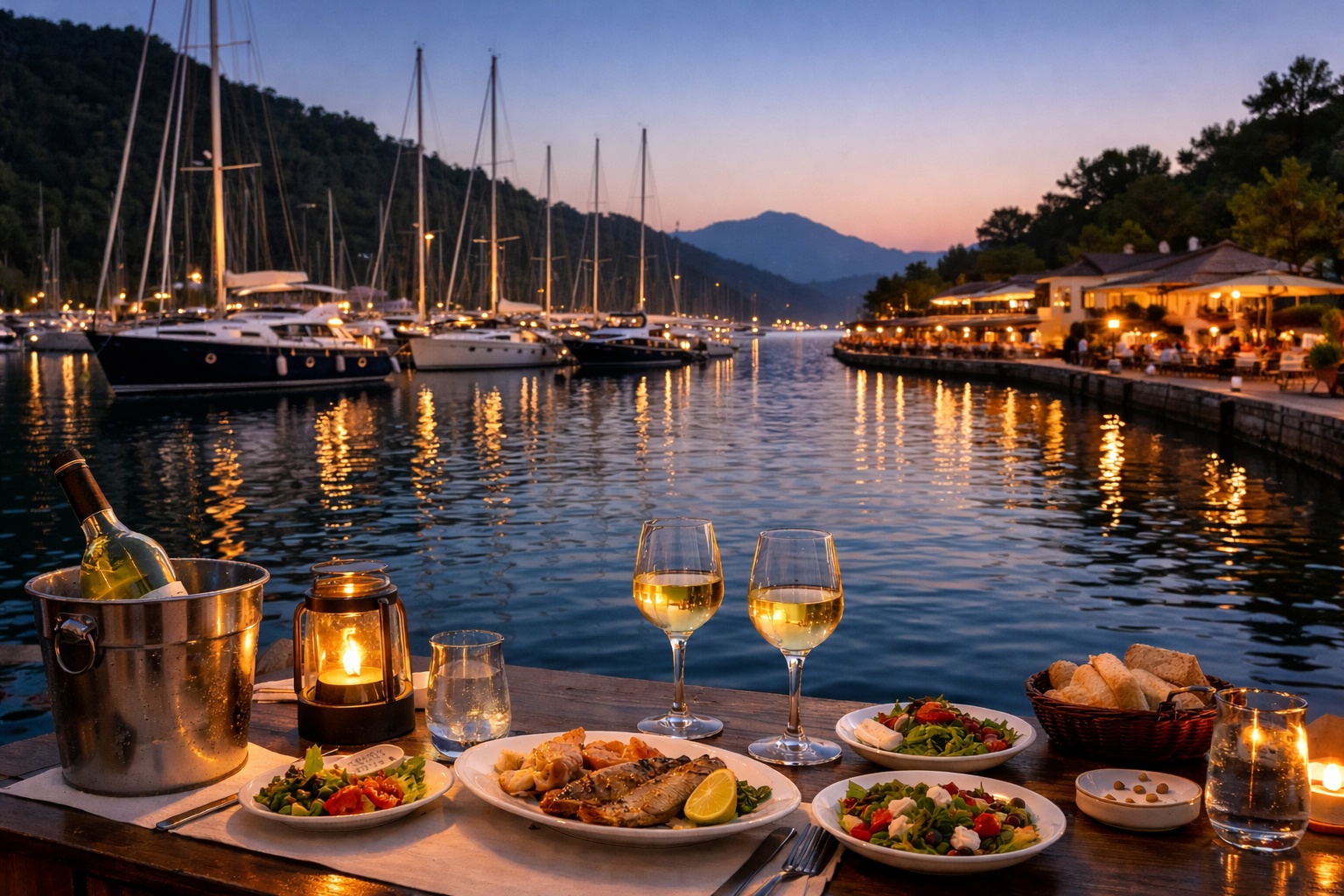 Göcek, tekne ışıklarının suya inci taneleri gibi döküldüğü akşam manzarasıyla “yavaş ve şık” bir finalin adresidir. Gün boyunca yüzülen koyların ardından marinada atılan kısa bir tur, denizin günlüğünü kapatır; rıhtım boyunca yürürken halatların ve direklerin çıkardığı hafif ses, fonda çalan müziğe eklenir. Restoranların menülerindeki yerel balık ve zeytinyağlılar, masaya deniz kokusunu taşır; sohbet uzadıkça su yüzeyindeki yansımalar koyulaşır. Yaz akşamlarında ince bir meltem, hem nefes aldırır hem de masadaki konuşmayı dingin tutar. Fotoğraf için tripod gerekmese de bir köşe masasında sabit bir açı seçmek, marina mimarisini ışıkla birlikte daha anlatısal kılar. Dönüşü kısa tutmak isteyenler, Göcek–Fethiye hattına yakın bir konumu tercih ederek gecenin ritmini yormadan sürdürebilir. Romantik kaçamak planlarında, ertesi sabah manzaraya karşı uzun kahvaltı için Balayı Villaları özel bir atmosfer sunar.
