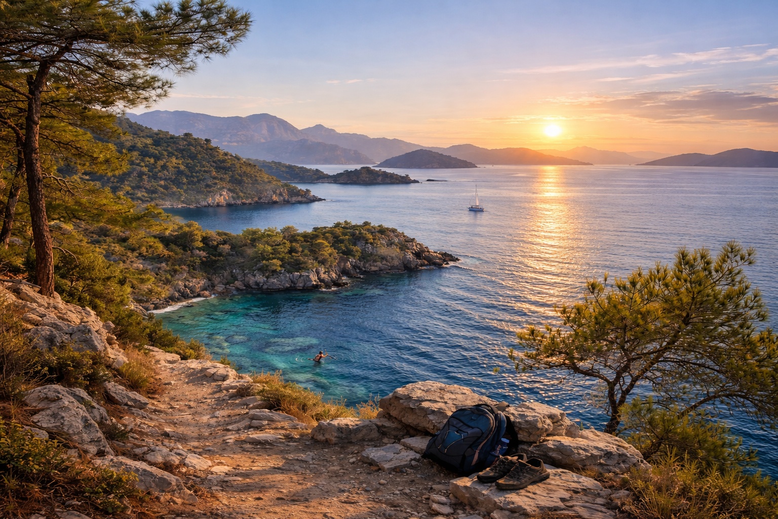 Gemile Yarımadası boyunca kıyıyı takip eden patika, Fethiye’nin “sessiz manzara tiyatrosu”nu adım adım açar. Sabah saatlerinde çamların arasında yükselen reçine kokusu, denizin tuzuyla birleşir; patikanın kıyıya en çok yaklaştığı yerlerde maske–şnorkelle suya girmek, kısa ve tazeleyici molalar sunar. Yol boyunca eşik niteliğinde küçük seyir noktaları belirir; her dönüşte kompozisyon değişir, ada ve kıyı çizgisi farklı bir hikâye anlatır. Öğleden sonra rüzgâr hafifleyince manzara daha tanımlı görünür; fotoğrafta kontrast artar. Yürüyüşün zorluğu orta seviyededir; sağlam tabanlı ayakkabı ve su, konforu belirler. Patikanın sonunda oturup gün batımını beklemek, cardakalem çizilmiş bir tabloyu izlemek gibidir. Dönüşte kıyıdan tek bir kulaç daha atıp, akşamı Kiralık Fethiye Villaları arasından deniz manzaralı bir terasta tamamlamak, günü akılda kalan bir dinginlikle kapatır.