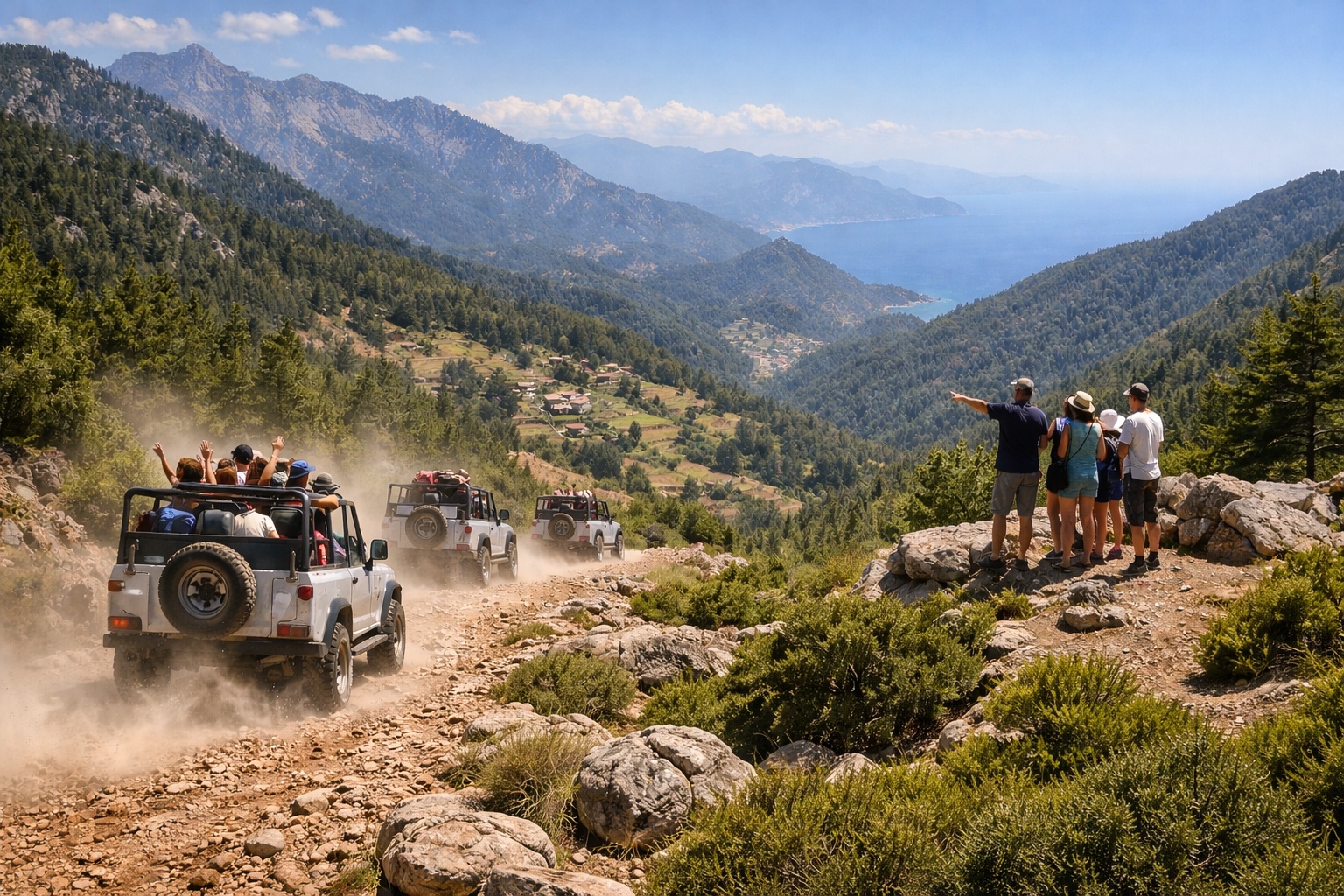 Sahil sıcağından kaçıp serin yükseklerde nefes almak isteyenler için jeep safari, Fethiye’nin topoğrafyasını “katman katman” okumayı sağlar. Orman içi yollar, vadi tabanları ve kısa dere geçişleri, gün boyunca değişen mikro iklimlerin tadını çıkarmanıza izin verir. Rehber eşliğinde yapılan sürüşlerde hem güvenlik hem hikâye anlatısı güçlüdür; yol üstünde verilen kısa aralarda yerel bitki örtüsü ve coğrafyanın jeolojik geçmişi hakkında bilgi almak deneyimi zenginleştirir. Öğle sıcağında yayla serinliğinde kurulan sofralar, klasik bir safari gününün ritmini belirler; ev yapımı ayran, zeytin ve domates kokusu tozlu yolun yorgunluğunu alır. Fotoğraf açısından geniş kadrajlı manzara terasları ile toz bulutu içinde donmuş anlar aynı günün hafızasına kazınır. Dönüşte üzerinizde kalan “dağ rüzgârı”yla denize inmek ya da havuza atlamak, ısı farkını tatlı bir oyuna dönüştürür. Sessiz bir akşam ve geniş teras arıyorsanız, orman–deniz bakışını buluşturan Deniz Manzaralı Villalar doğru seçim olur.