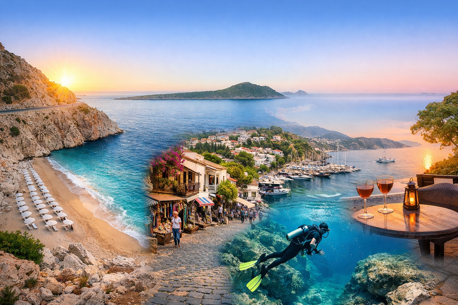Fethiye’den Kaş’a uzanan rota, deniz kalitesi ve manzara çeşitliliği açısından kısa sürede güçlü bir etki yaratır. Sabah erken yola çıkıp Kaputaş’ta gün doğumuna yakın bir saatte mola vermek, turkuazın en sakin tonlarıyla buluşmayı sağlar; öğlene kalmadan Kaş merkezde yürüyüş ve kısa bir dalış arası verilebilir. Marina çevresinde kahve, dar sokaklarda el işi dükkânları ve öğleden sonra sahile dönüş, günü yormadan tamamlar. Akşam üzeri trafik yoğunlaşmadan Fethiye’ye dönmek, günü akışkan tutar; gecenin kalanını manzaraya karşı sessiz bir terasta uzatmak, zihni rahatlatır. Böyle bir günün ardından “burada da konaklasak mı?” düşüncesi doğarsa, birkaç gün ayırarak Kaş Kiralık Villalar kategorisinden manzaralı seçenekler değerlendirilebilir. Fethiye merkezli bir tatilin içine serpiştirilen Kaş kaçamağı, rotayı tek düzelikten çıkaran lezzetli bir ara duraktır.