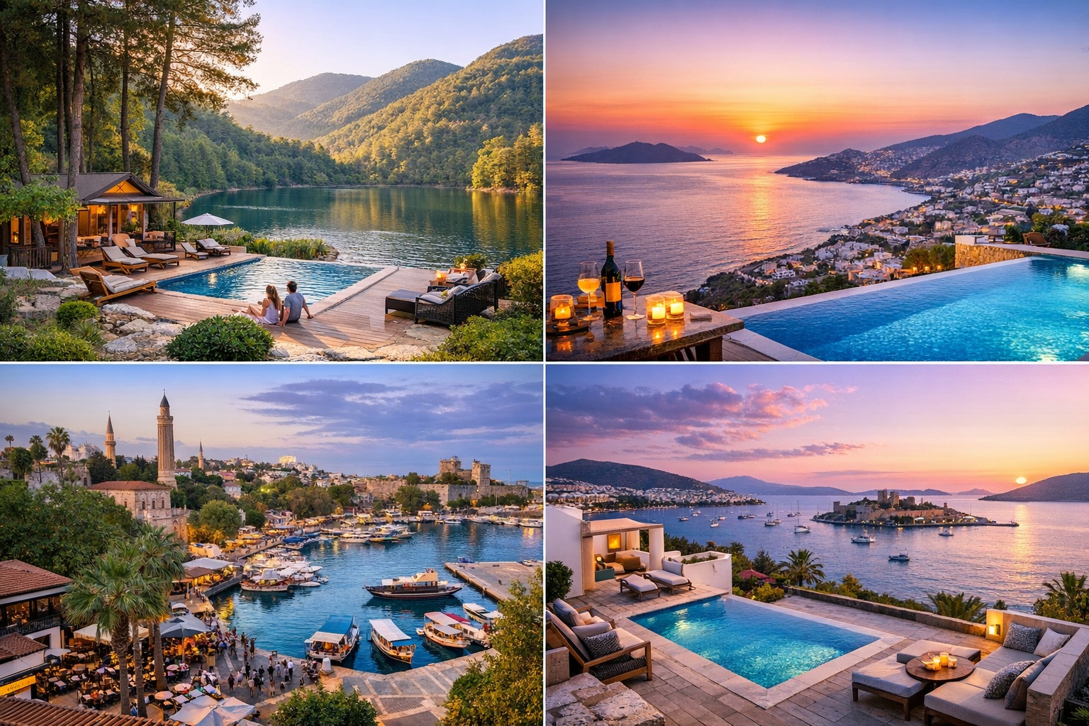 Sessiz ve doğa odaklı bir deneyim için Kiralık Fethiye Villaları, panoramik gün batımları ve manzara için Kalkan kiralık villa, canlı Akdeniz şehir hayatı için Antalya kiralık villa ve Ege’nin enerjisi için Bodrum villa kiralama seçenekleri öne çıkar.