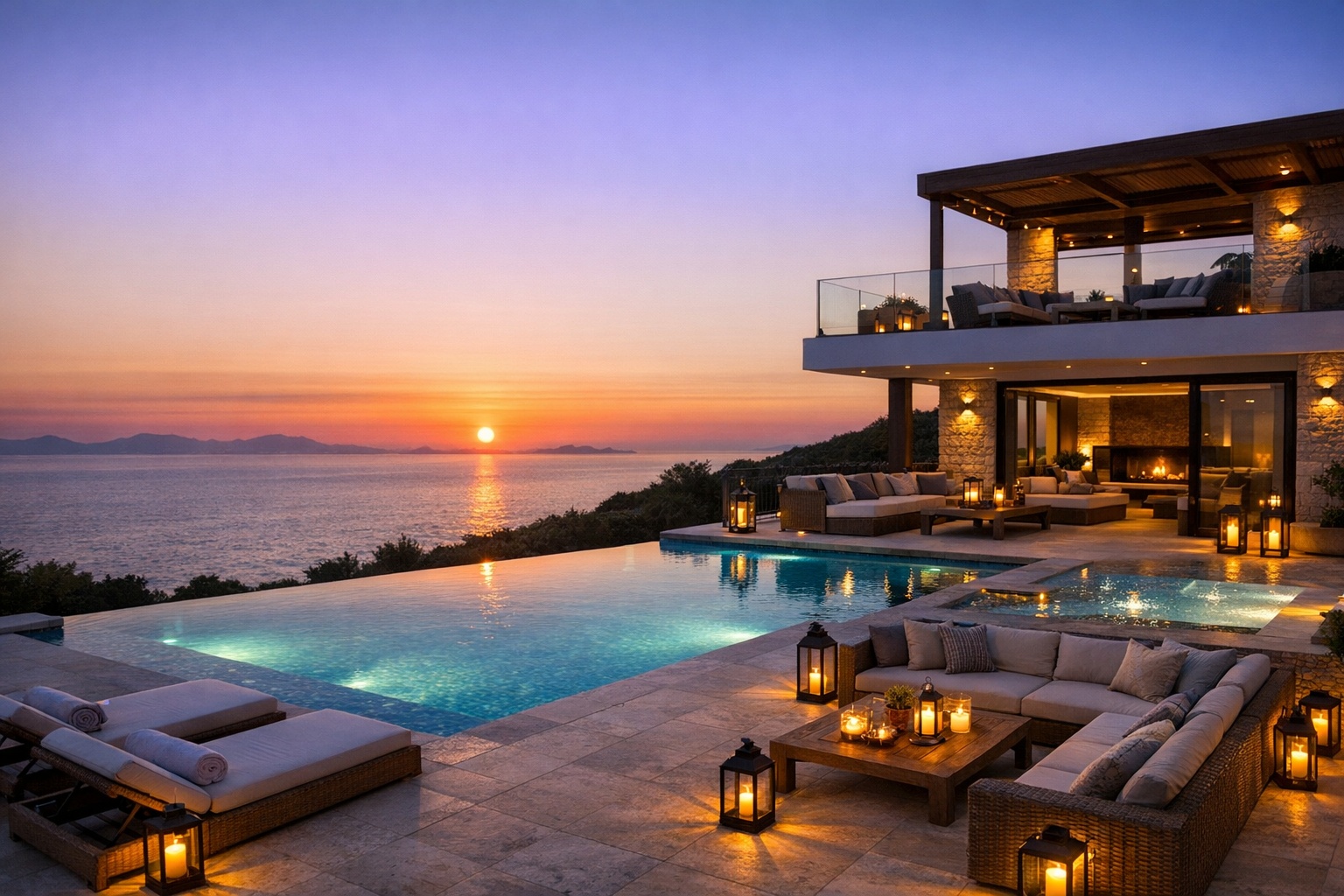 - • Akşam konforu ve şıklık: Lüks villalar