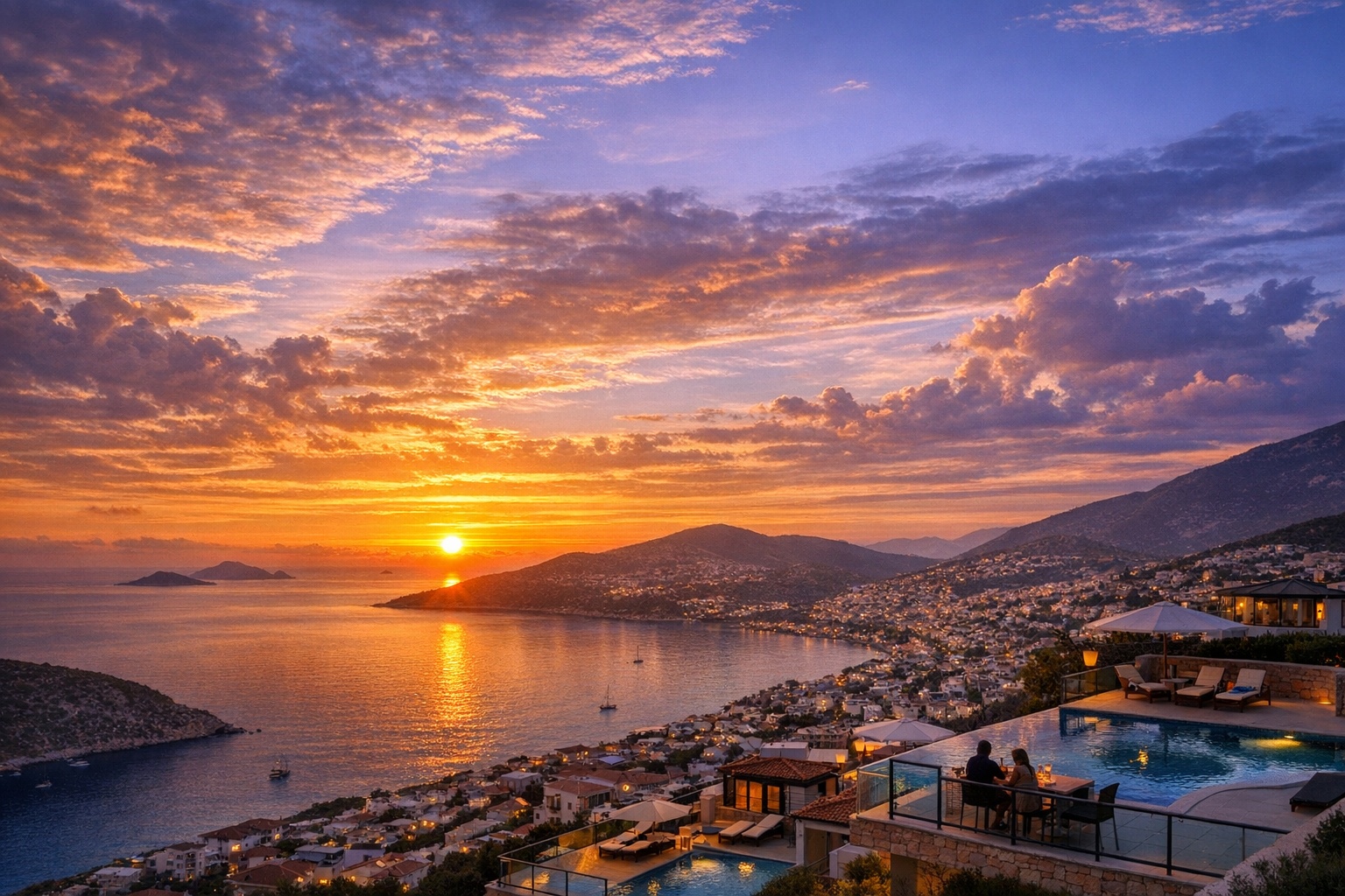 Kalkan; teras teras yükselen mimarisi, geniş deniz ufku ve batıya bakan koylarıyla Türkiye’de gün batımını en etkileyici izleyebileceğiniz destinasyonlardan biridir. Doğru konum, doğru kademe ve doğru teras tasarımıyla bir villa, her akşamı altın ve fuşya tonlarına boyanmış bir “özel gösteriye” dönüştürür. Aşağıda Kalkan’da gün batımı deneyimini zirveye taşıyacak villa seçim kriterleri, kategori önerileri ve pratik ipuçlarını bulabilirsiniz.