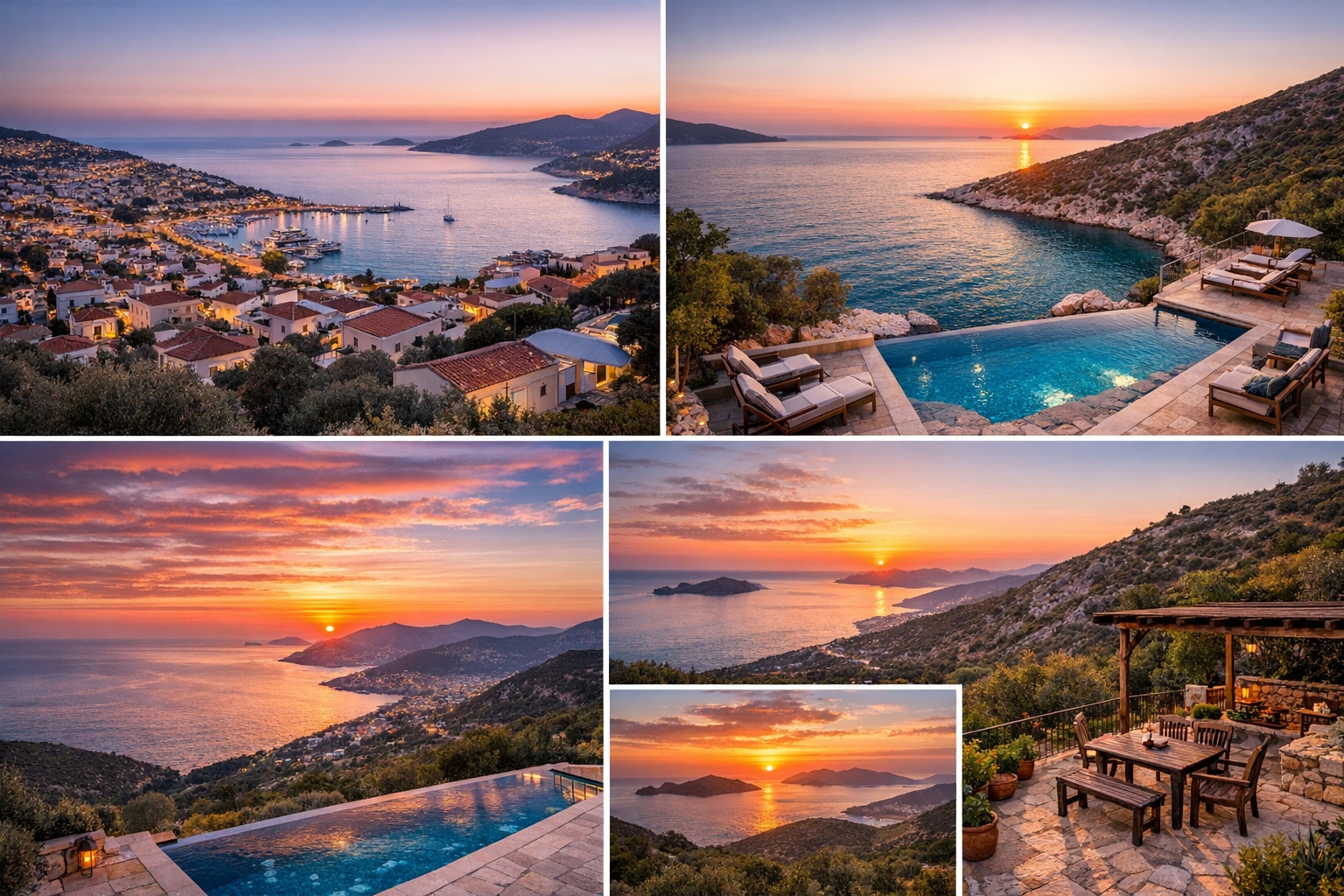 - • Kalkan’ın en iyi gün batımı manzaraları için: Kalkan kiralık villa