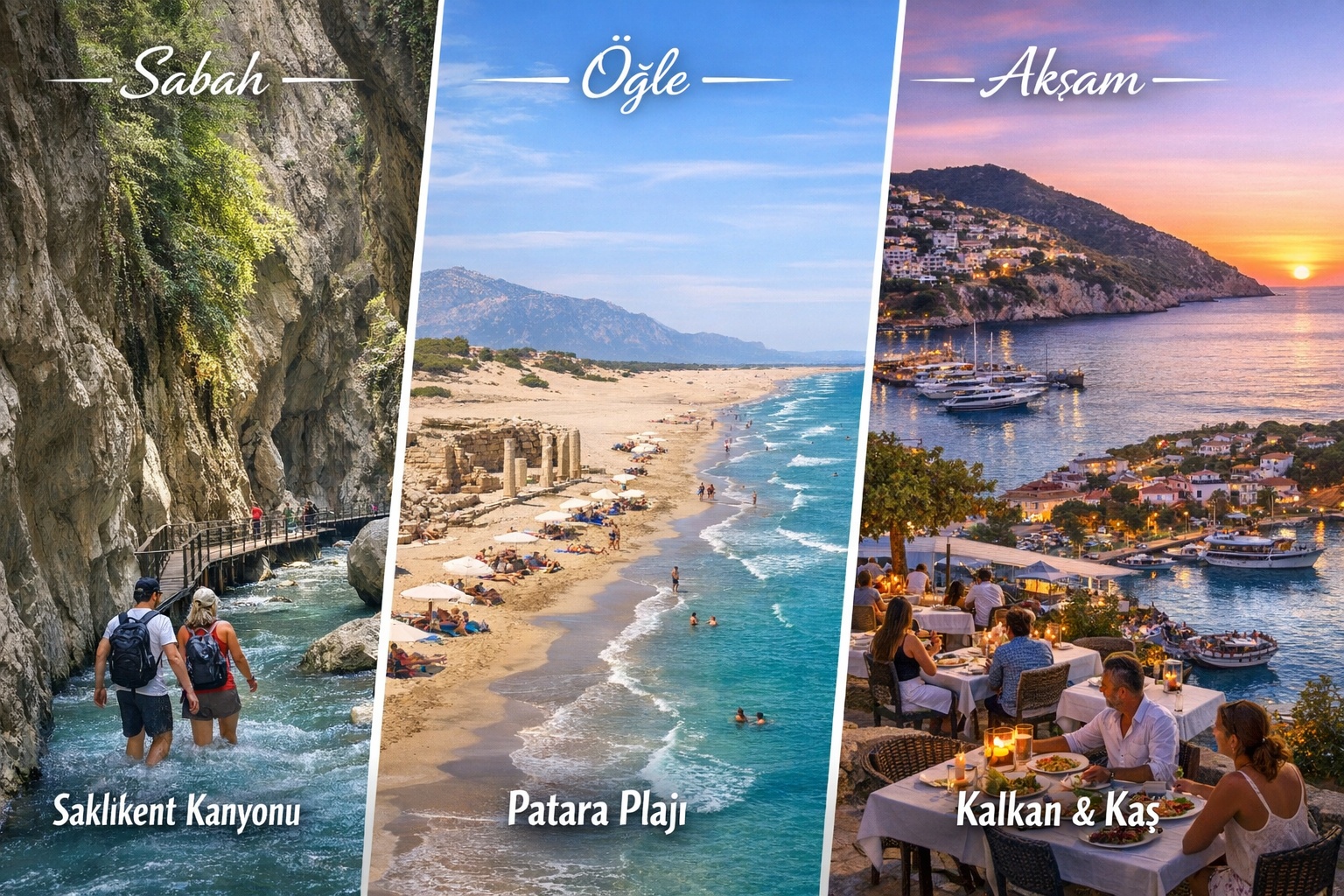 Kaş, Kalkan ve Fethiye arasında seyahat ederken yalnızca bir noktaya gitmek yerine rota üzerinde bulunan doğal ve tarihi güzellikleri keşfetmek tatilinizi çok daha keyifli hale getirebilir.