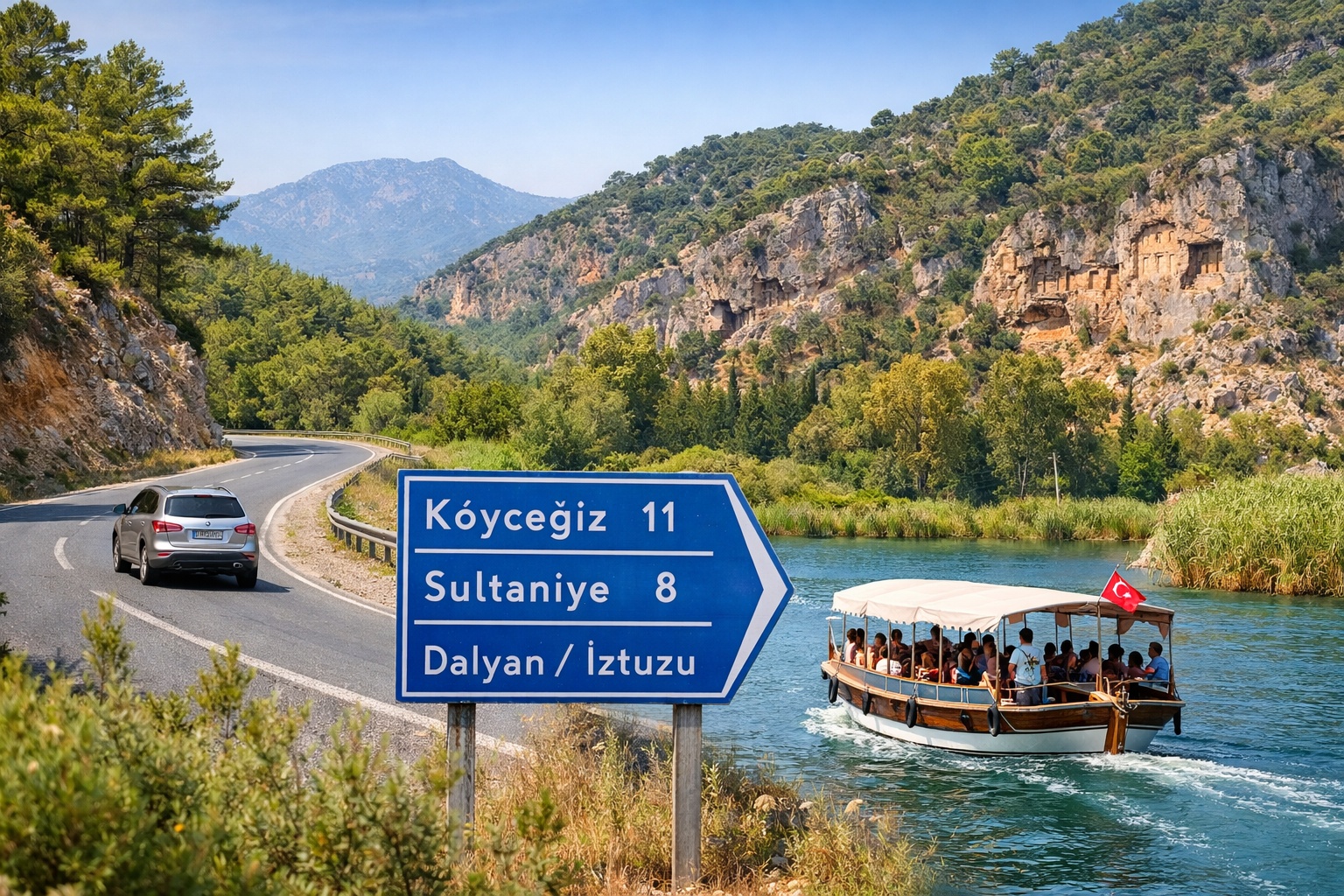 Özel araç ile: Köyceğiz merkezden kısa bir sürüşle erişim sağlanır; tabelalar üzerinden yönlendirme yapılır. Rota planlamasında “Köyceğiz → Sultaniye → Dalyan/İztuzu” hattı sık kullanılır. (Yol tarifi ve erişim detayları Köyceğiz Belediyesi sayfasında da yer alır.)