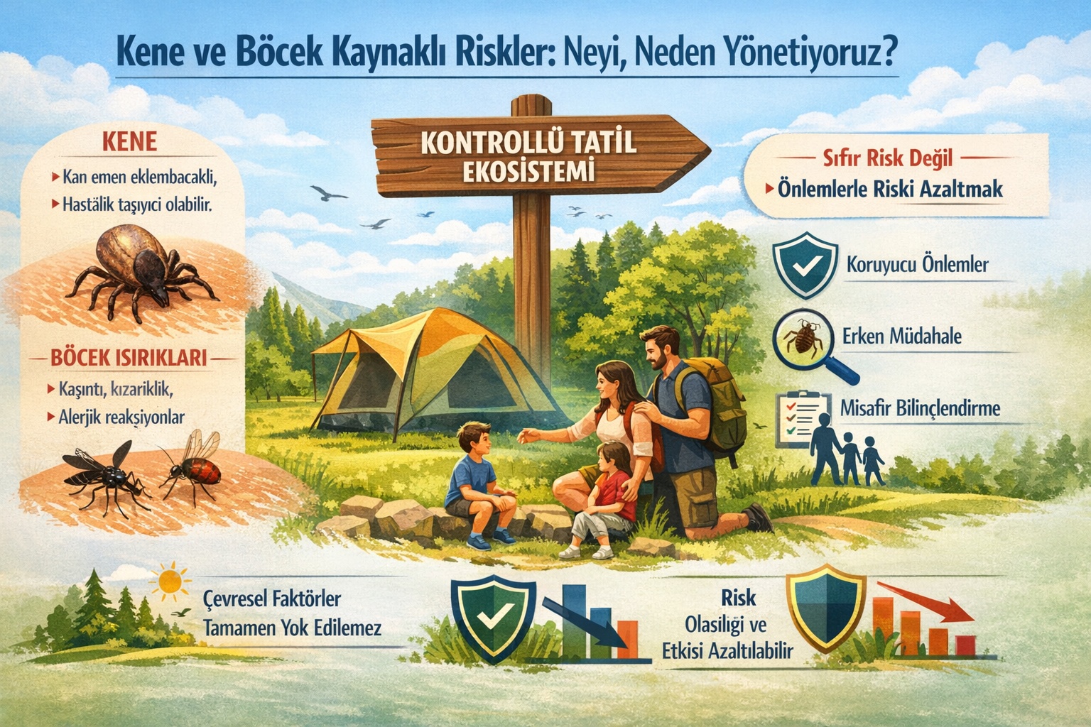 Bu noktada hedef; “sıfır risk” iddiası değil, riski yönetilebilir seviyeye indirmek ve misafir davranış setiyle birlikte “kontrollü tatil ekosistemi” oluşturmaktır. Çünkü doğa ile temasın olduğu her tatil modelinde, çevresel faktörler tamamen ortadan kaldırılamaz; ancak önleyici katmanlar sayesinde riskin olasılığı ve etkisi belirgin biçimde azaltılabilir.