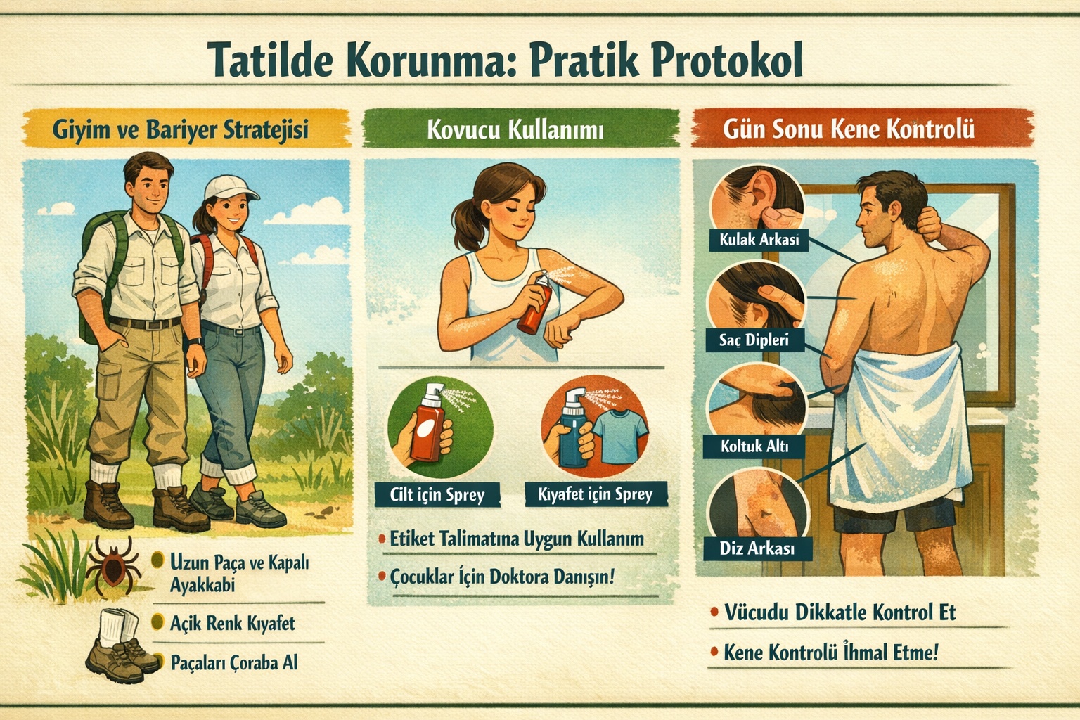 Kene riskini yönetmede en kritik adımlardan biri, gün sonunda kısa bir kontrol rutinidir.